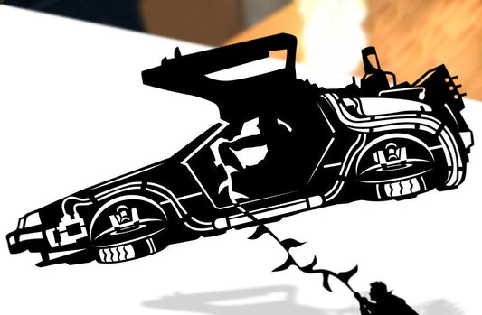 UNFRAMED DeLorean Marty Escape - Back to the Future paper cut art