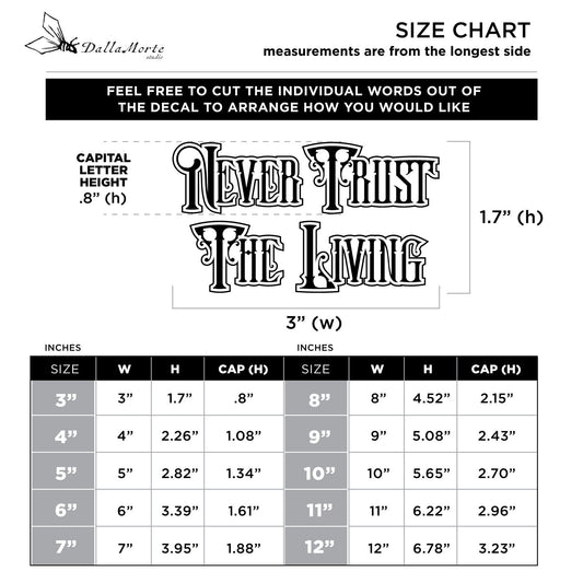 Never Trust The Living Vinyl Decal Sticker Vinyl Car Decal Laptop Sticker Water Bottle Sticker Goth Sticker Die Cut Sticker Gothic Decor