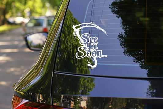 See You Soon Grim Reaper Scythe Vinyl Decal Sticker Vinyl Car Decal Laptop Sticker Water Bottle Sticker Goth Sticker Die Cut Sticker