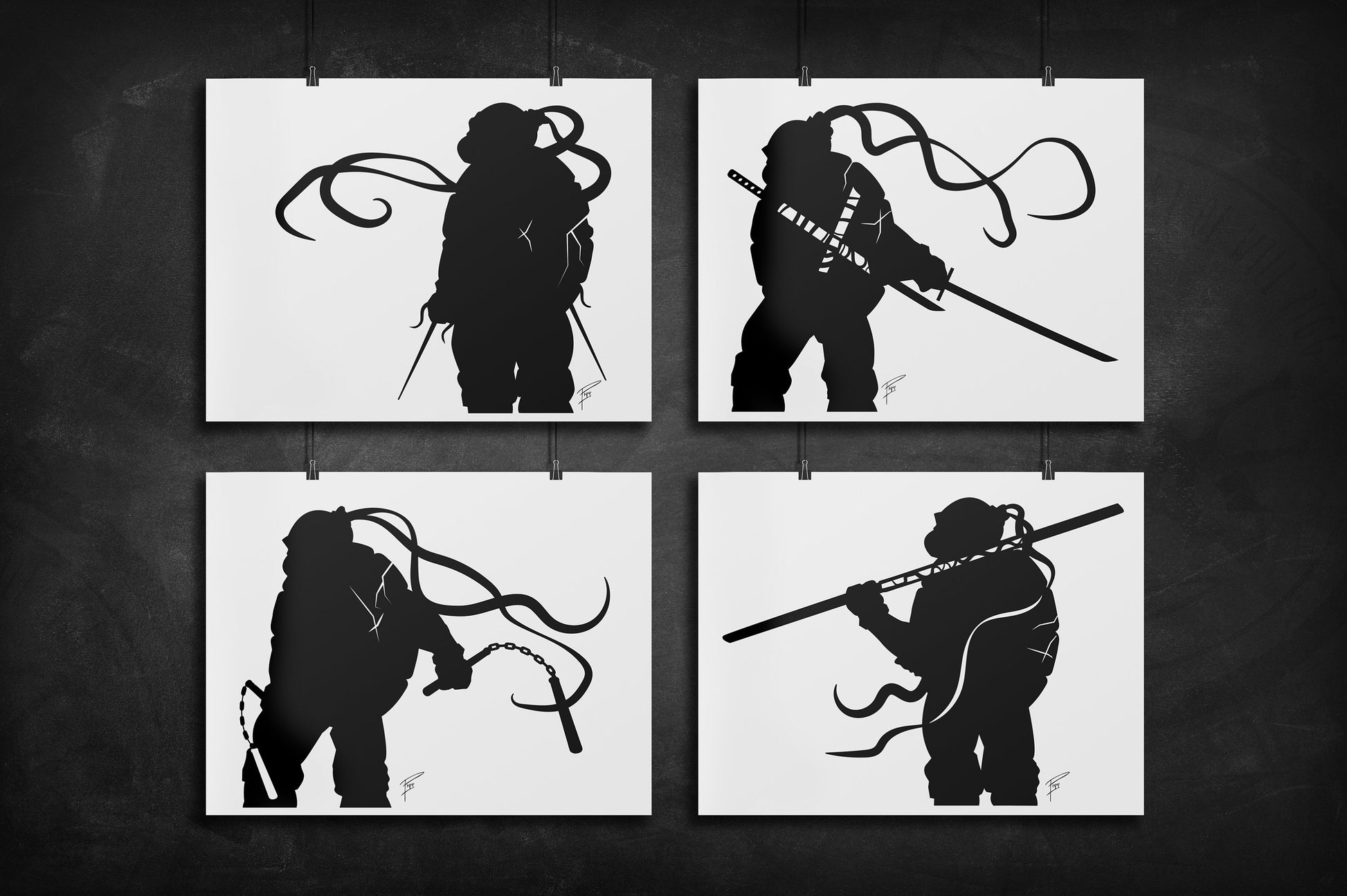Teenage Mutant Ninja Turtles - Donnie, Leo, Mikey, Raph silhouette art prints