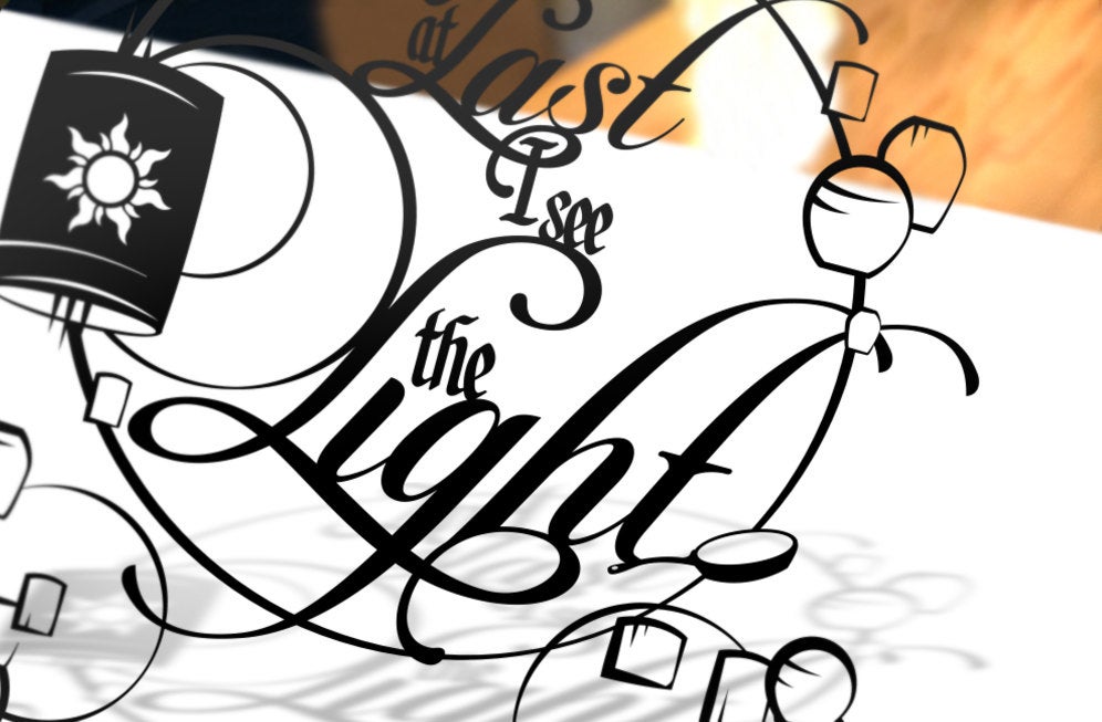UNFRAMED Tangled silhouette hand cut handmade PAPER CUT from one black sheet. Tangled Princess Rapunzel and Flynn I See The Light Disney Quote Paper cut Geek Art Love Art Anniversary Gift Wedding Gift For Her Hand Cut