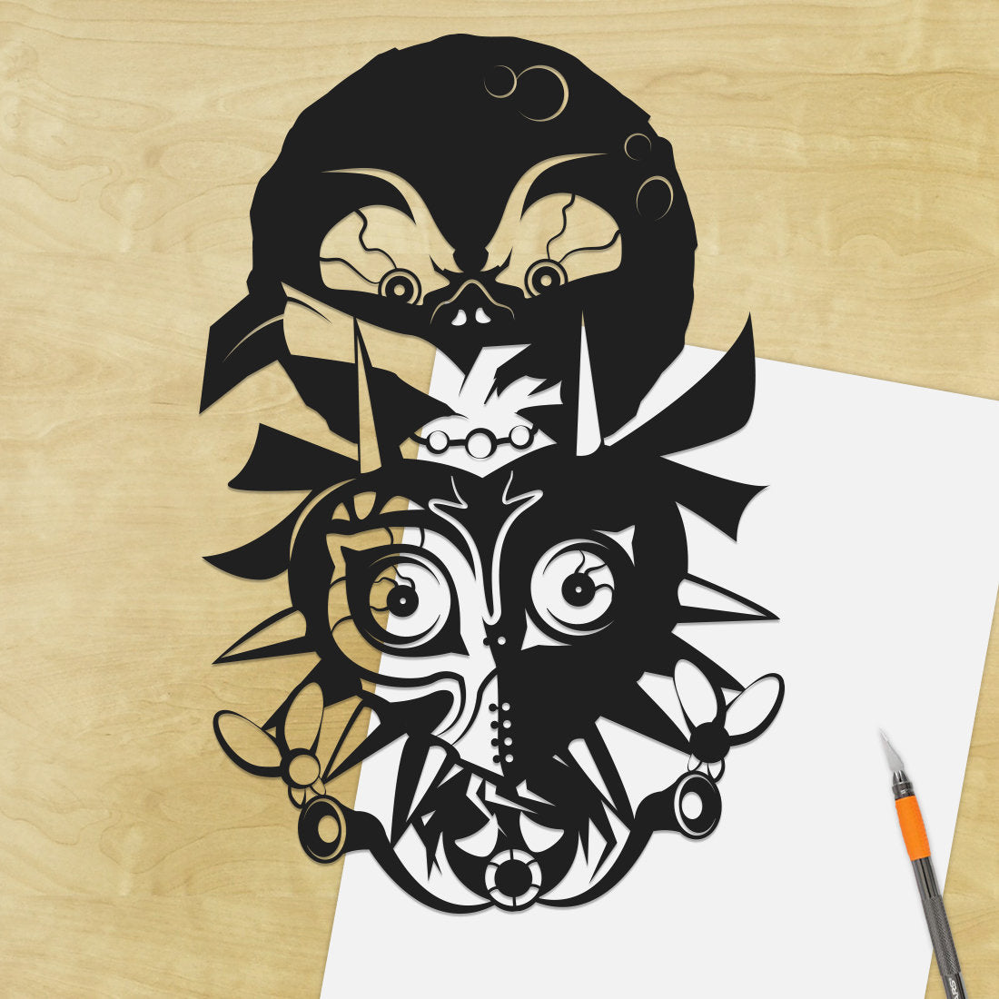 UNFRAMED Legend of Zelda Majora's Mask silhouette hand cut paper craft from one black sheet